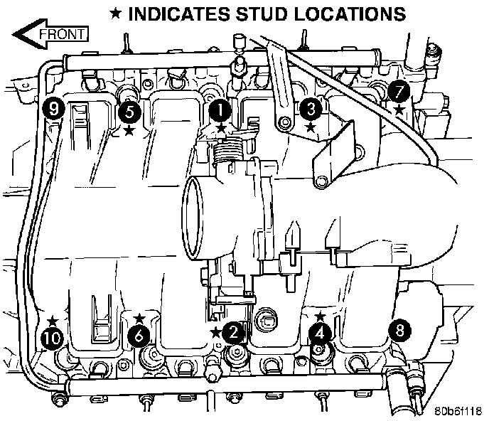 18. Remove intake manifold retaining fasteners, in reverse order of tightening sequence.