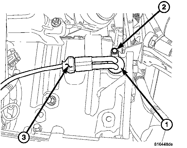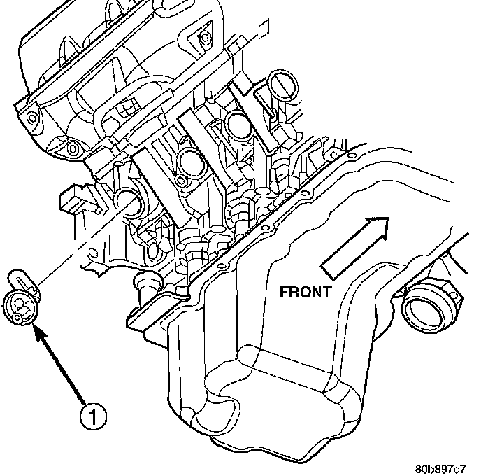 The 5.7L engine has the block heater located on the left side of the engine below the exhaust manifold in the rear of the engine (1) and is not immersed in engine coolant but makes direct contact with the block.