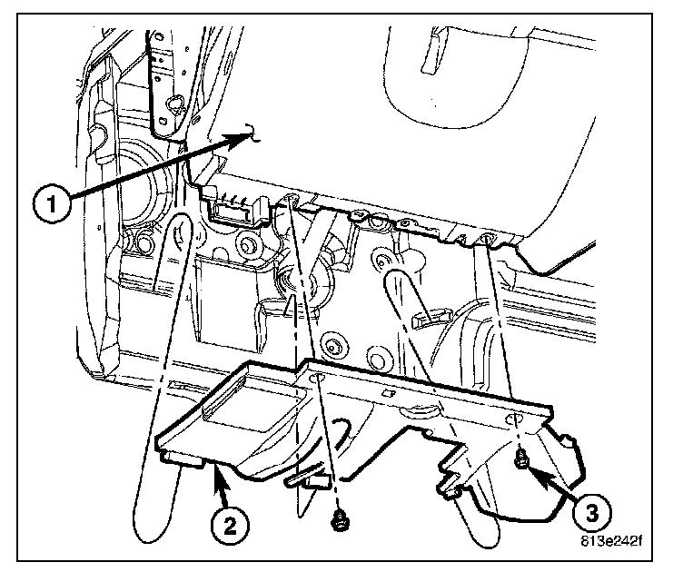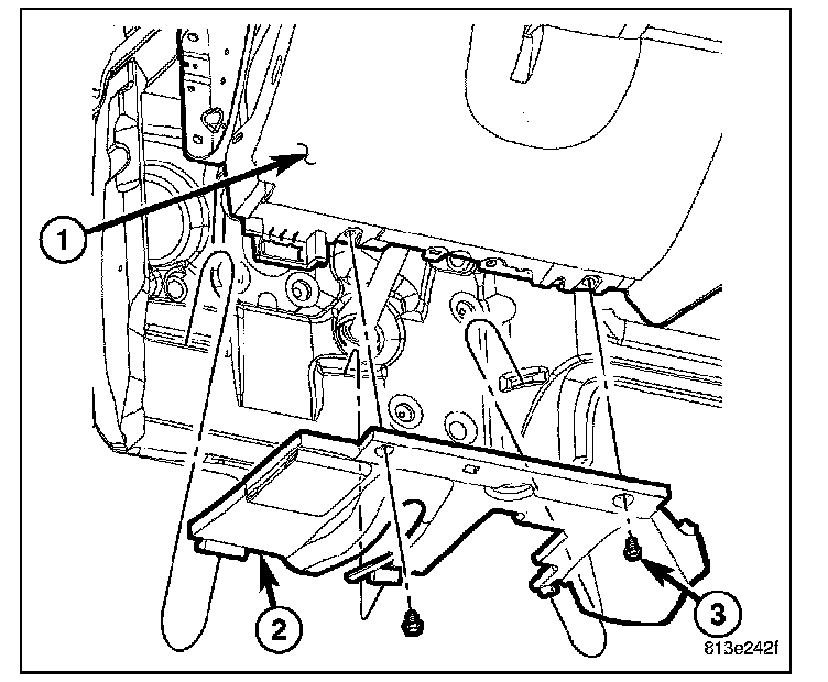 2. Remove the bolts (3) and remove the drivers side hush panel (2).