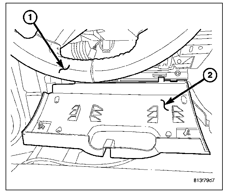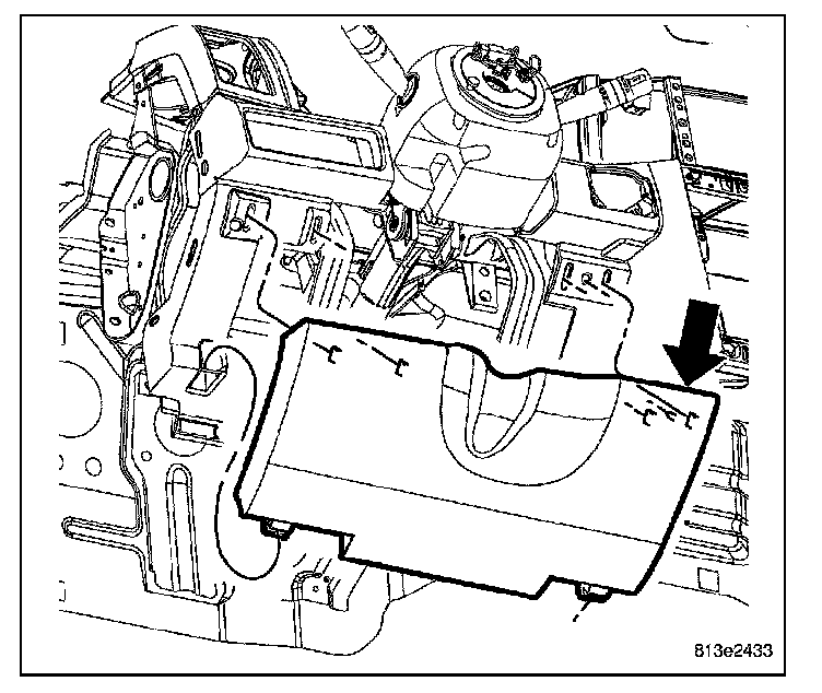 1. Snap the lower steering column opening cover hinges over the pivots and rotate up.