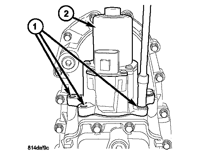 4. Remove the bolts (1) holding the shift motor and mode sensor assembly (2) to the transfer case.