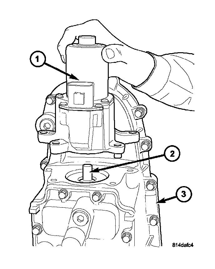 5. Remove the shift motor and mode sensor assembly (1) from the shift sector (2) and the transfer case (3).