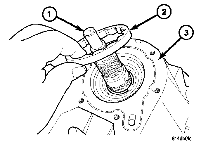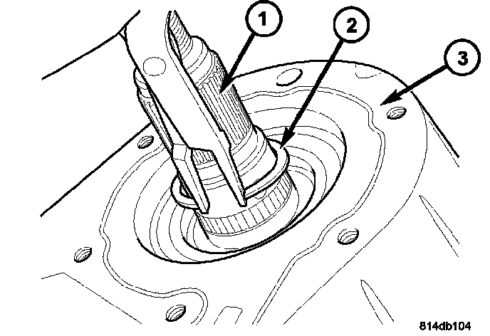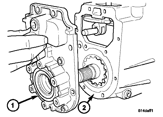 40. Remove the front output shaft (2) from the front housing (1) and the front output shaft front bearing.