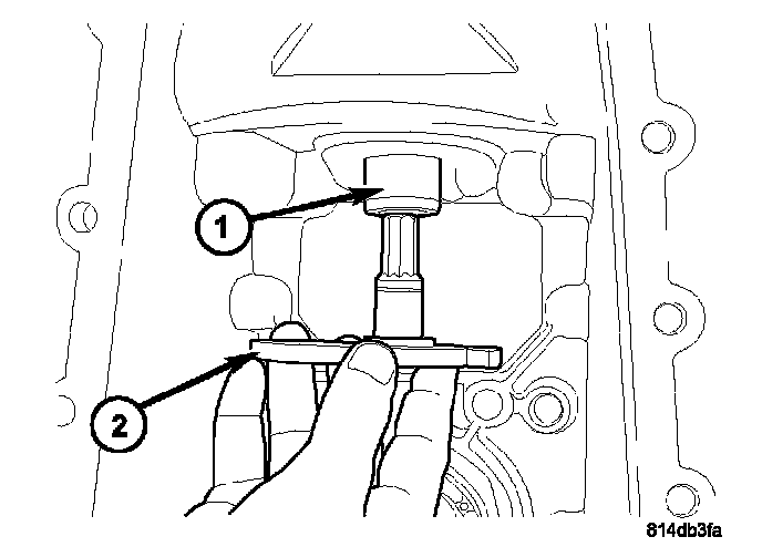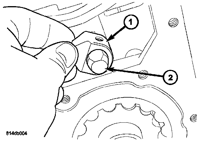 2. Using Holder C-3281 (1), remove the rear flange (2) nut.