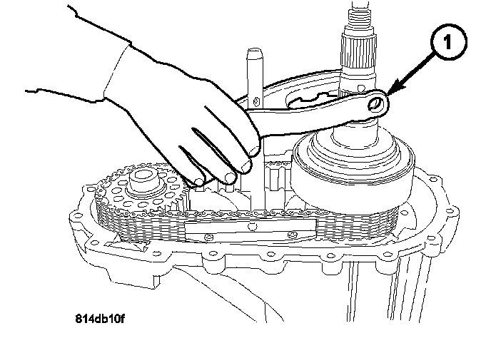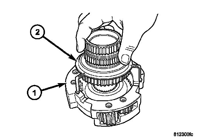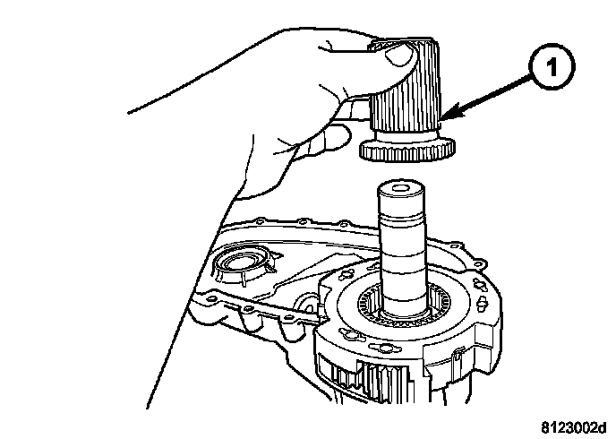 47. Remove the input gear and low range planetary assembly (1) from the front housing.