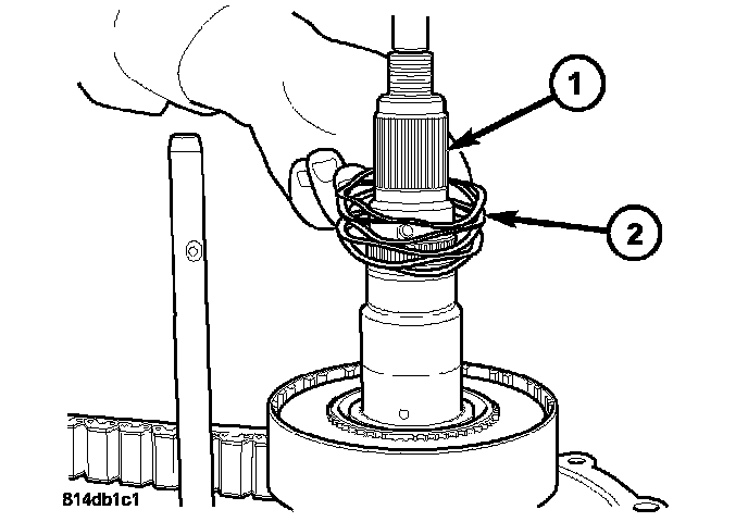 24. Remove the wave spring (2) from the main shaft (1).