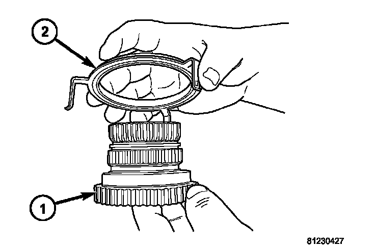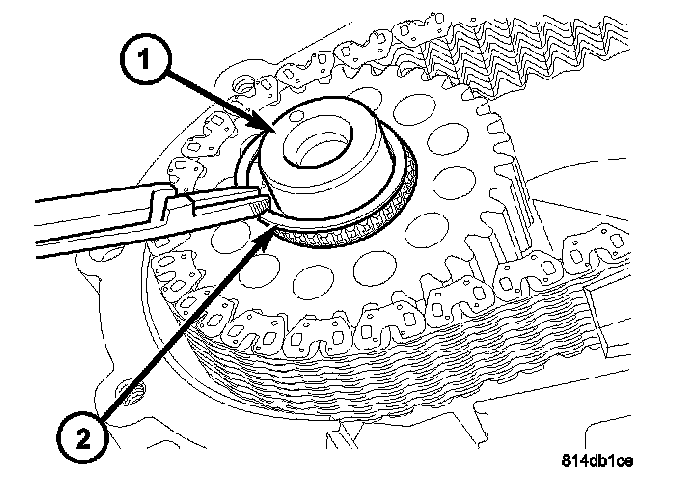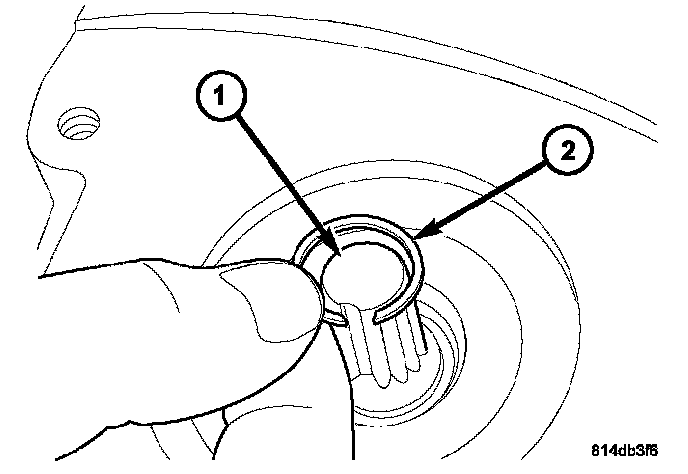 37. Remove the mode hub retainer (1) from the mode hub (2).