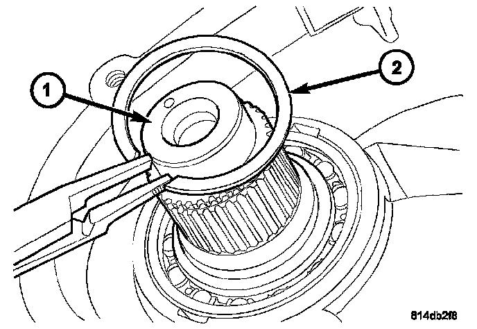 36. Remove the mode hub (2) and mode hub retainer from the differential assembly (1).