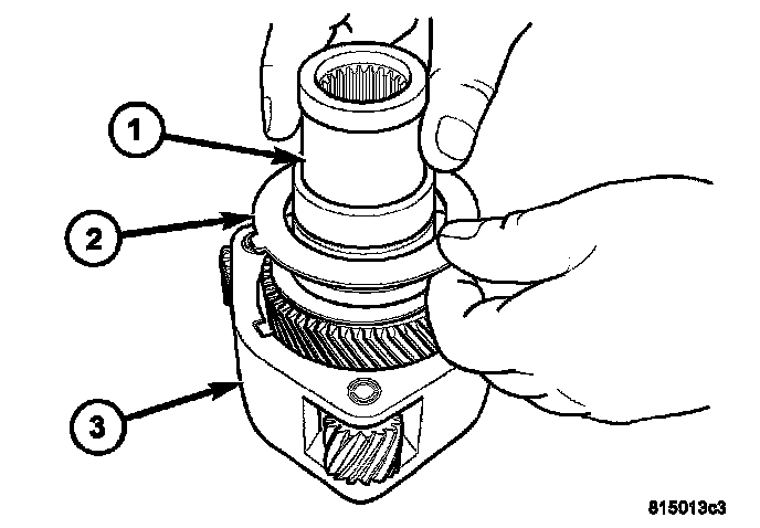 48. Remove the snap-ring (2) holding the input gear (1) into the low range planetary (3).