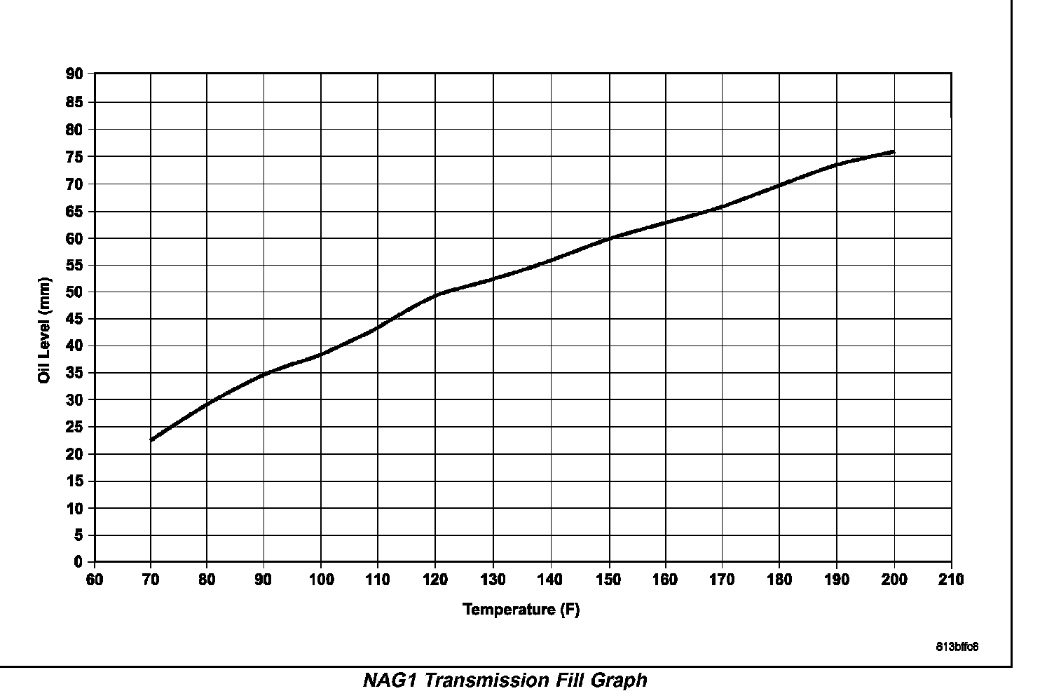 7. Determine the height of the oil level on the dipstick and using the height, the transmission temperature, and the Transmission Fluid Graph, determine if the transmission oil level is correct.