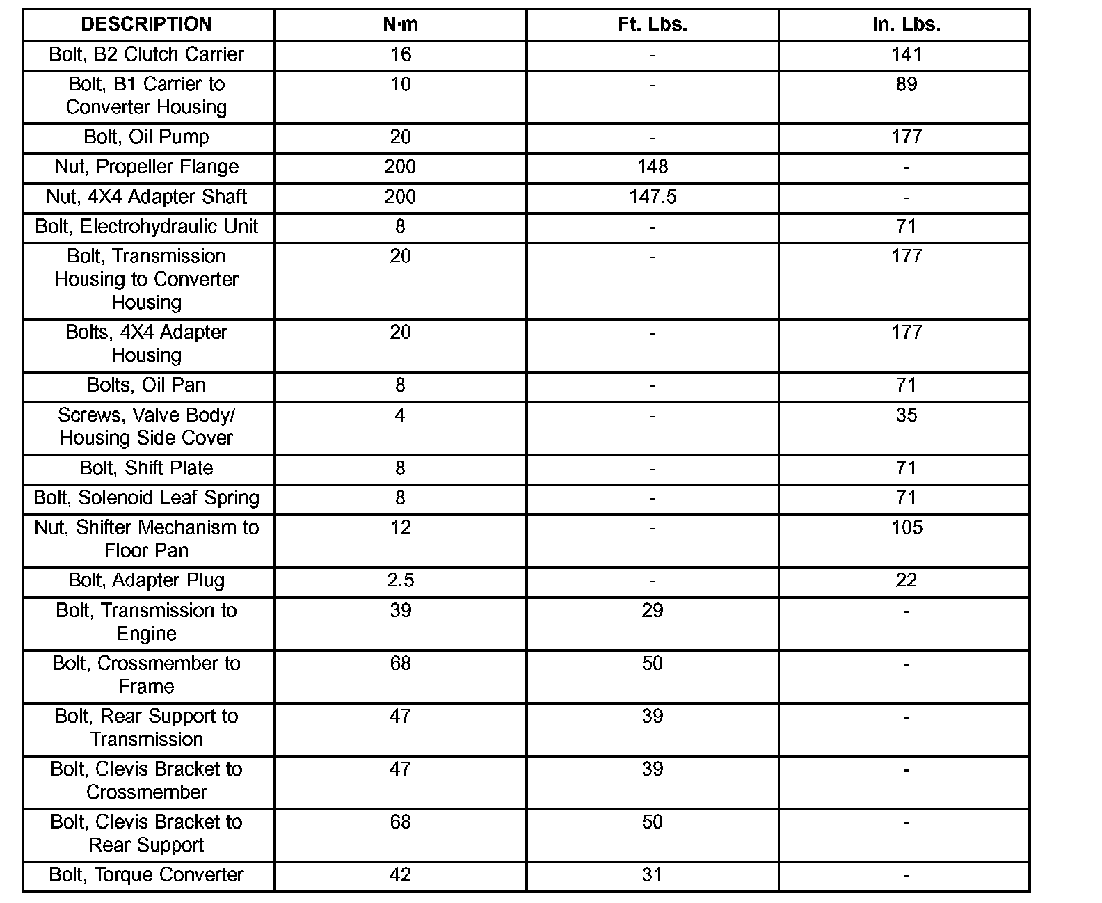 Torque Specifications: