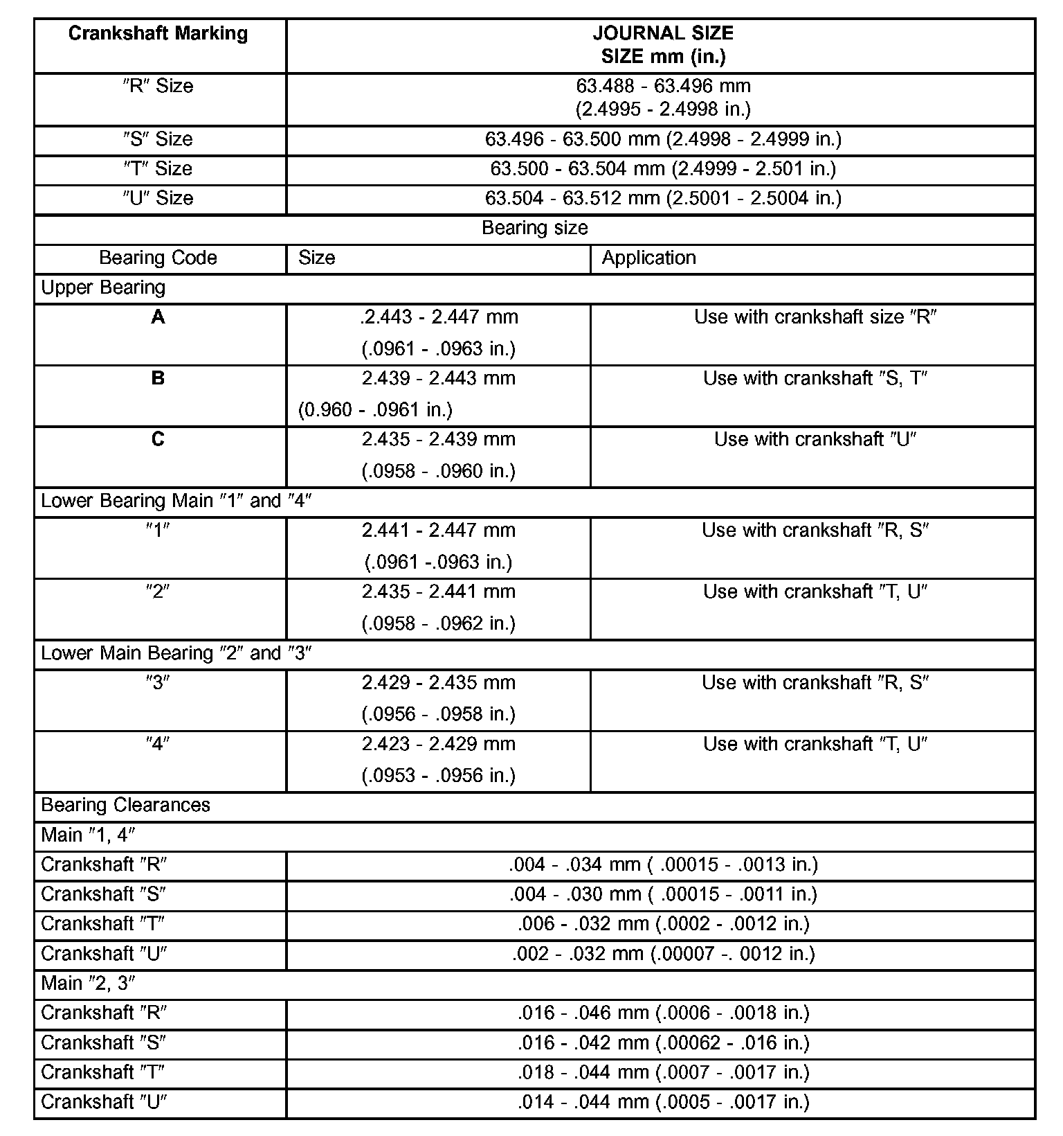 Main Bearing Journal Diameter 63.488 - 63.512 mm (2.4996 - 2.5005 inch)