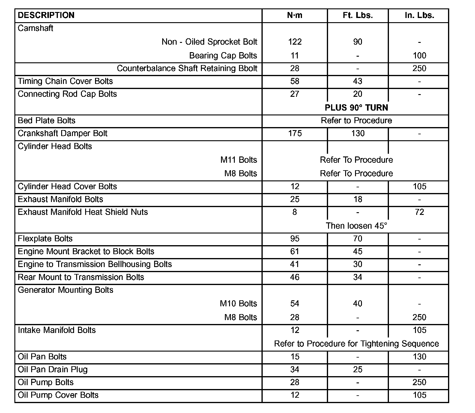 Tightening Torques
