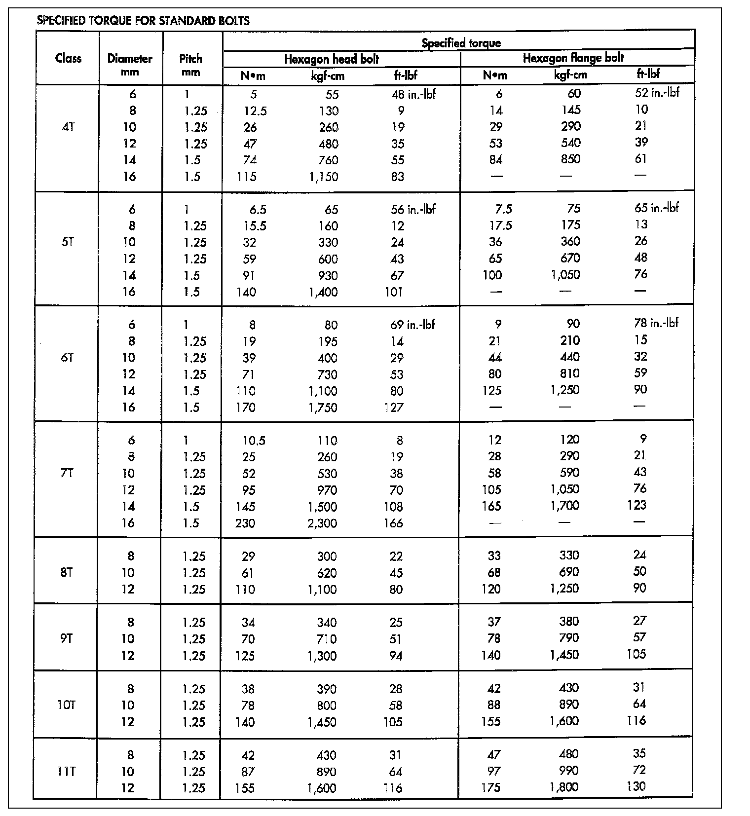 Individual Torque Charts appear within many of the Groups. Refer to the Standard Torque Specifications Chart for torque references not listed in the individual torque charts.