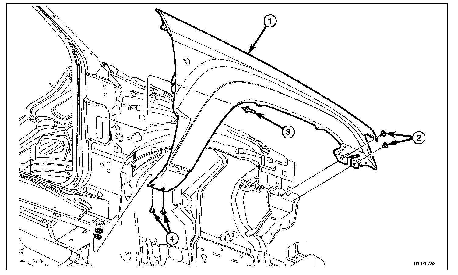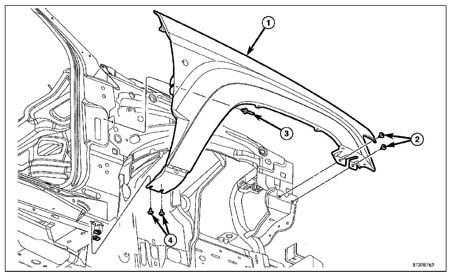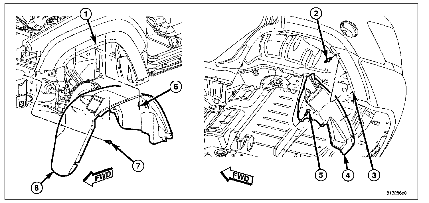 3. Remove wheel liner, Refer to Front Fender Liner.