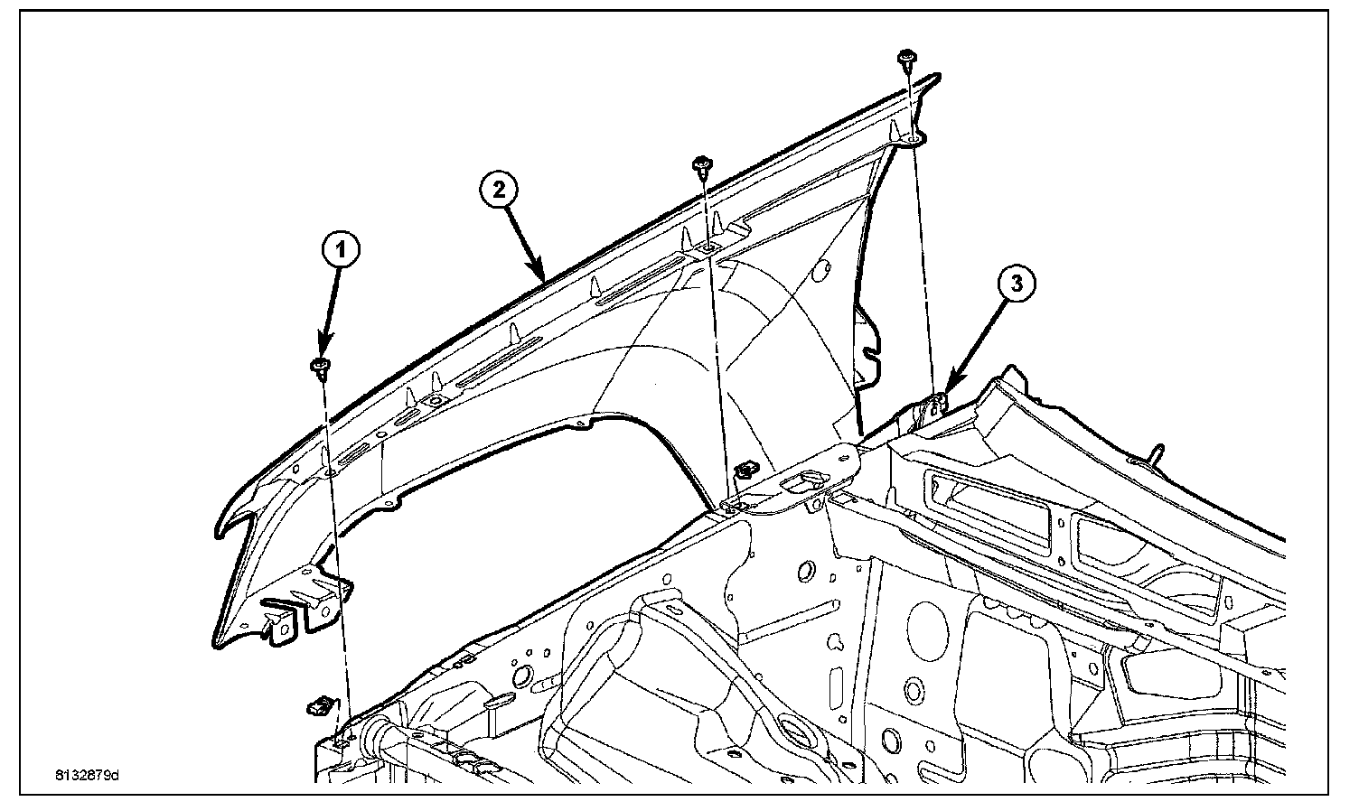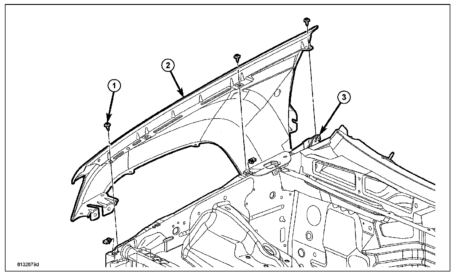 8. Remove upper fender mounting bolts.