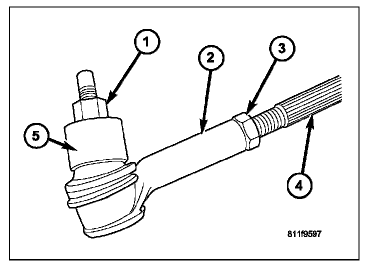 4. Remove the outer tie rod end (2) nut (1) from the ball stud.