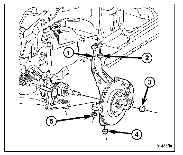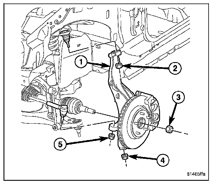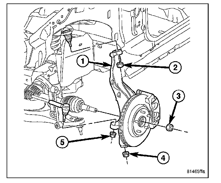 14. Install the lower ball joint nut (4) and tighten the nut to 81 N.m (60 ft.lbs.).