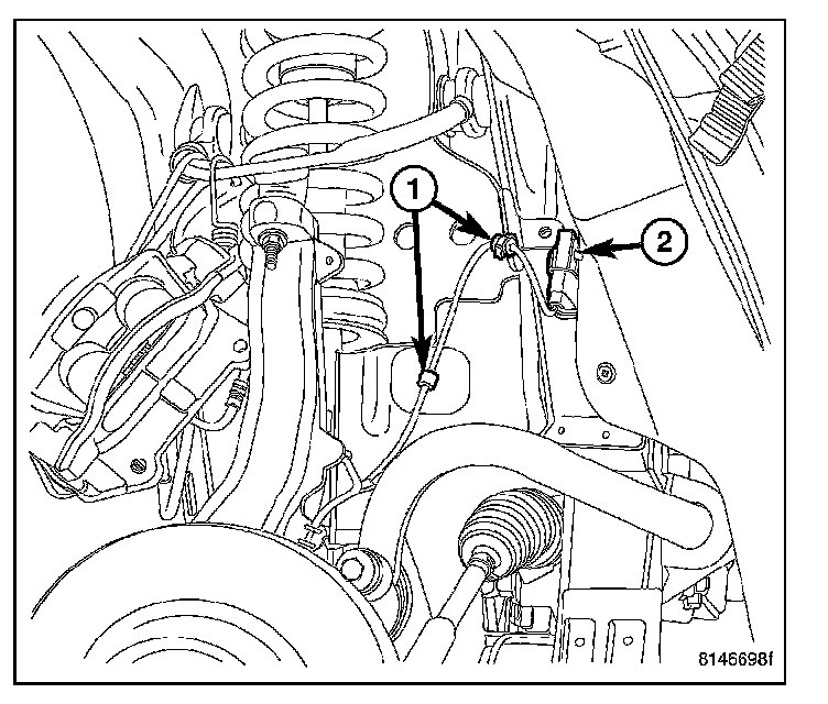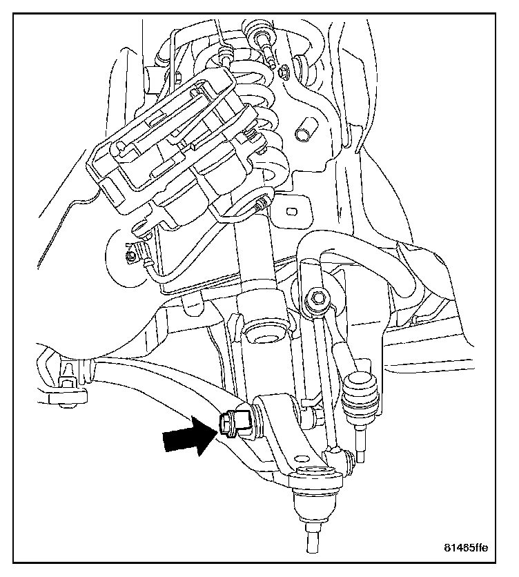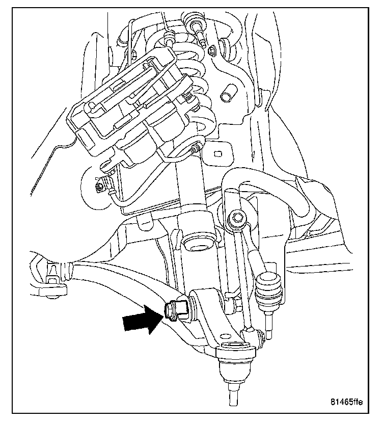 16. Install the upper ball joint nut (2).Tighten the nut to 81 N.m (60 ft.lbs.).