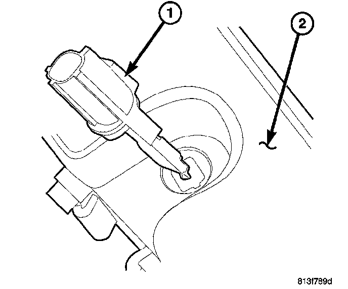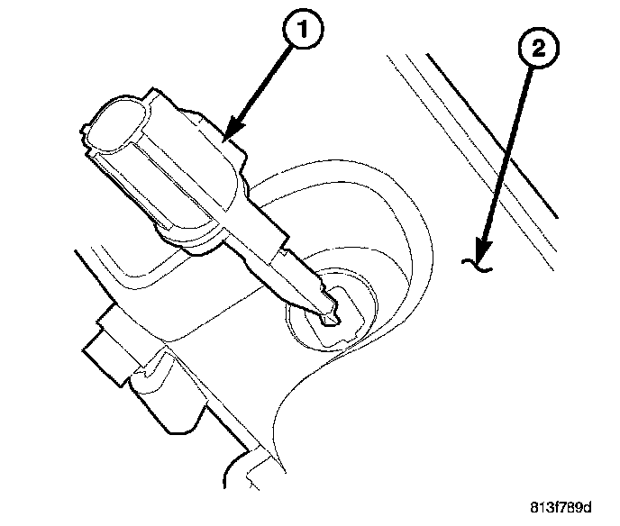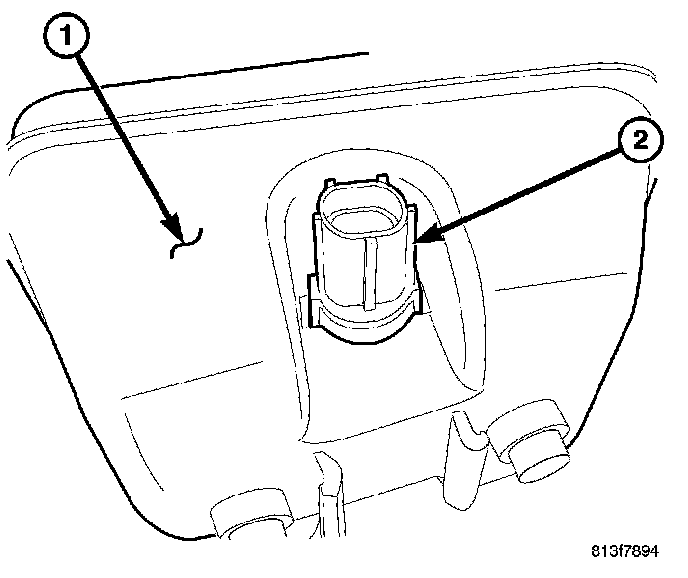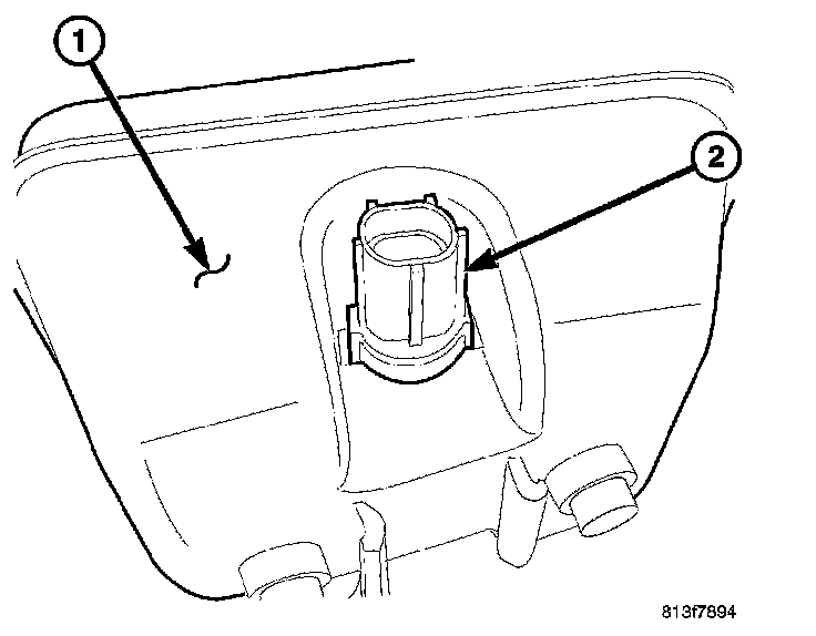 1. Install the sensor (1) with a new O-ring into the reservoir (2) until the locking tabs are engaged.