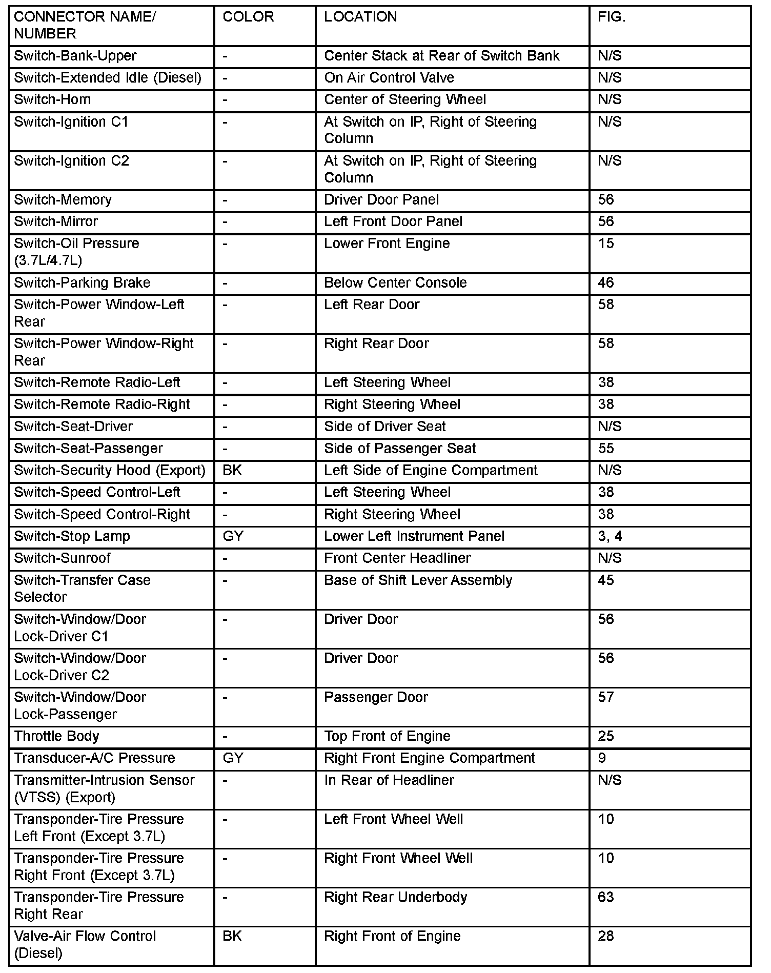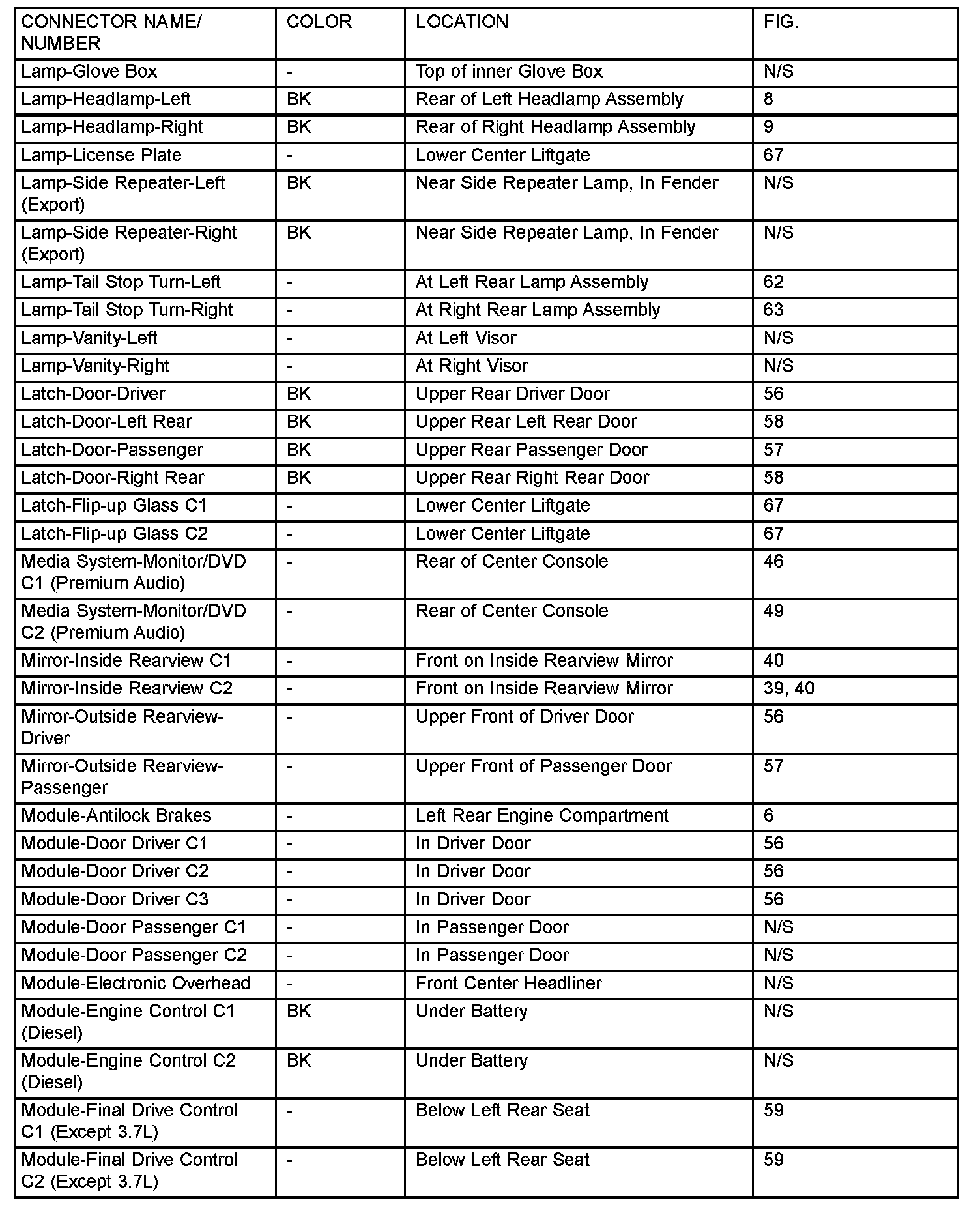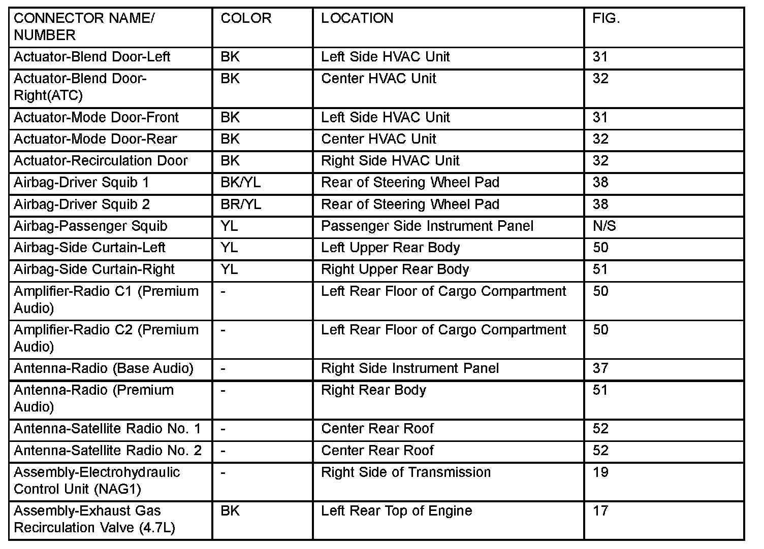 PLEASE NOTE:If a link on the index chart to a figure is not provided, that means that the connector and/or figure in question does NOT apply to the vehicle model selected.