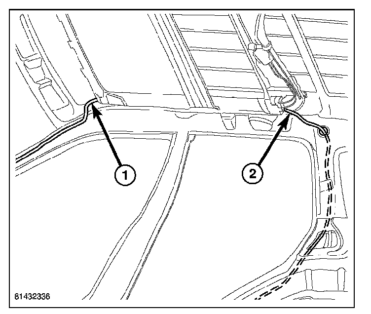 9. Connect the front (1) and rear (2) drain tubes to the sunroof.