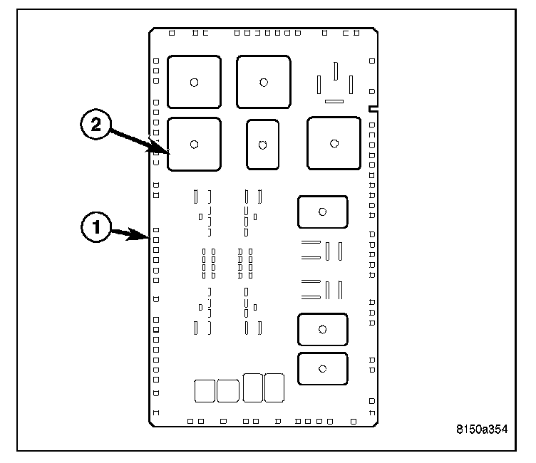 1. Position the EBL relay (2) into the proper receptacle of the junction block (1) located in the passenger compartment.