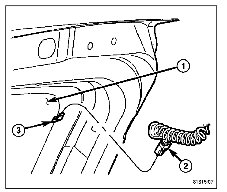 1. Disconnect heated liftgate glass electrical connector (2).