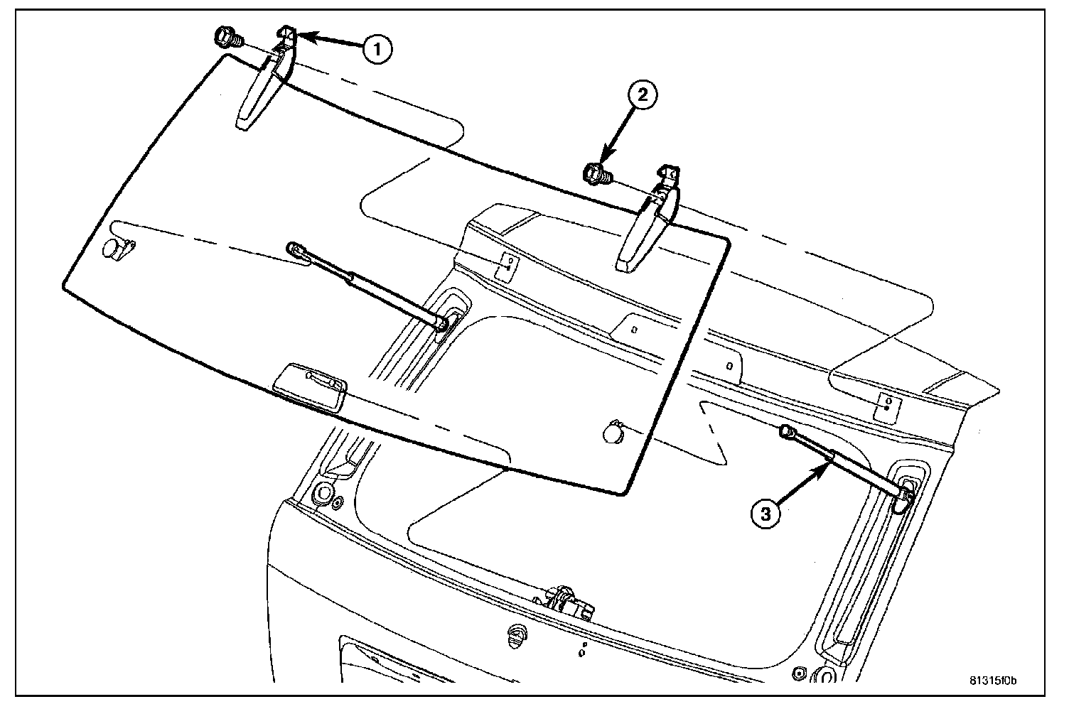 3. Disconnect glass support cylinders (3) at the lower ball studs.