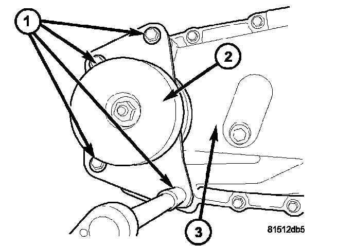 2. Remove the bolts (1) holding the damper (2) to the rear case (3).