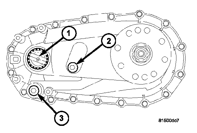 NOTE: The fill (2) and drain (3) plugs are both in the rear case.