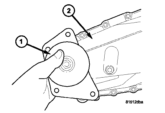 10. Install the transfer case damper (1) onto the rear case (2).