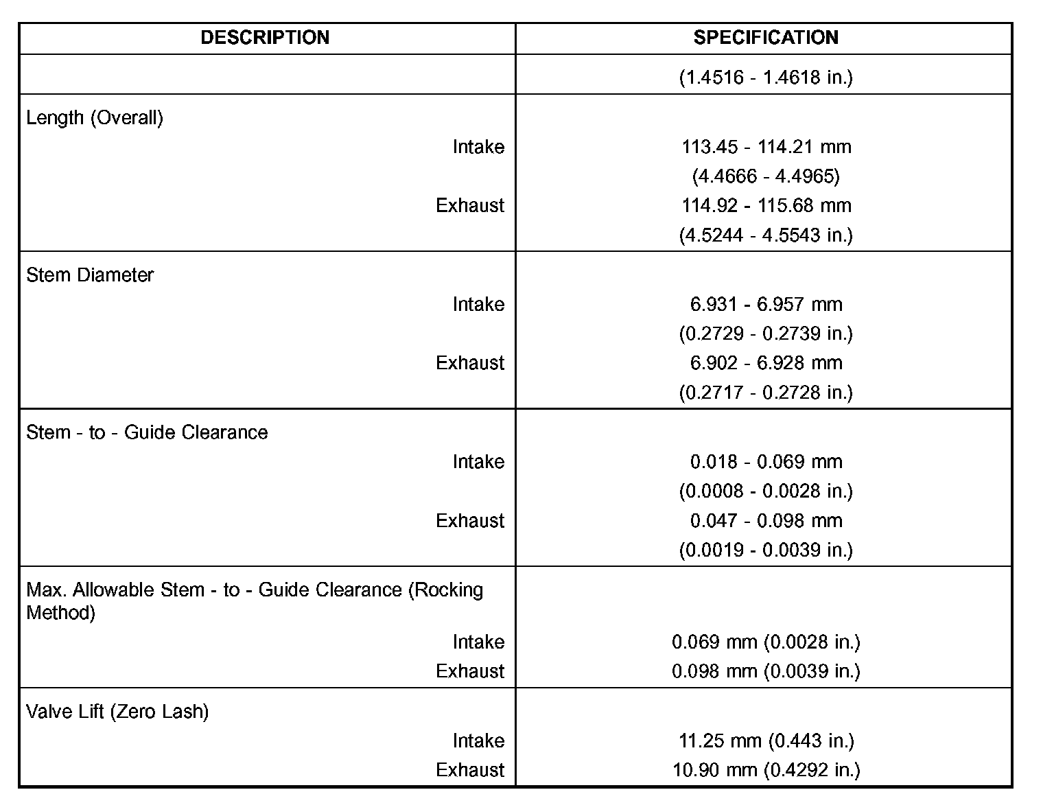 VALVE TIMING: