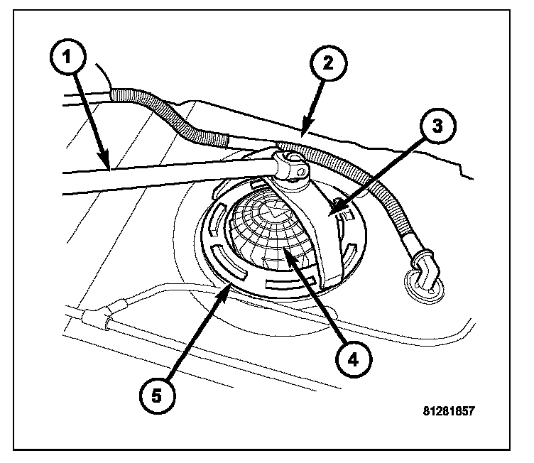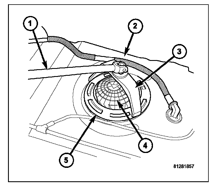 CAUTION: Whenever the fuel pump module is serviced, the rubber seal (gasket) must be replaced.