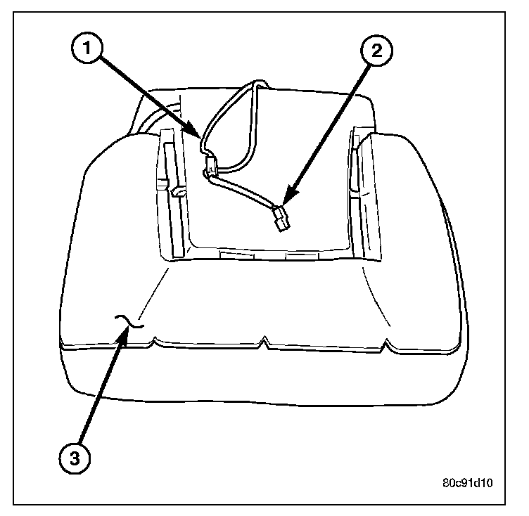 NOTE: Do not remove the factory installed heating elements (3) from the seat or seat back cushions. The original element is permanently attached and cannot be removed without permanent damage. The replacement heating element is designed to be applied directly on top of the inoperative factory installed heating element.