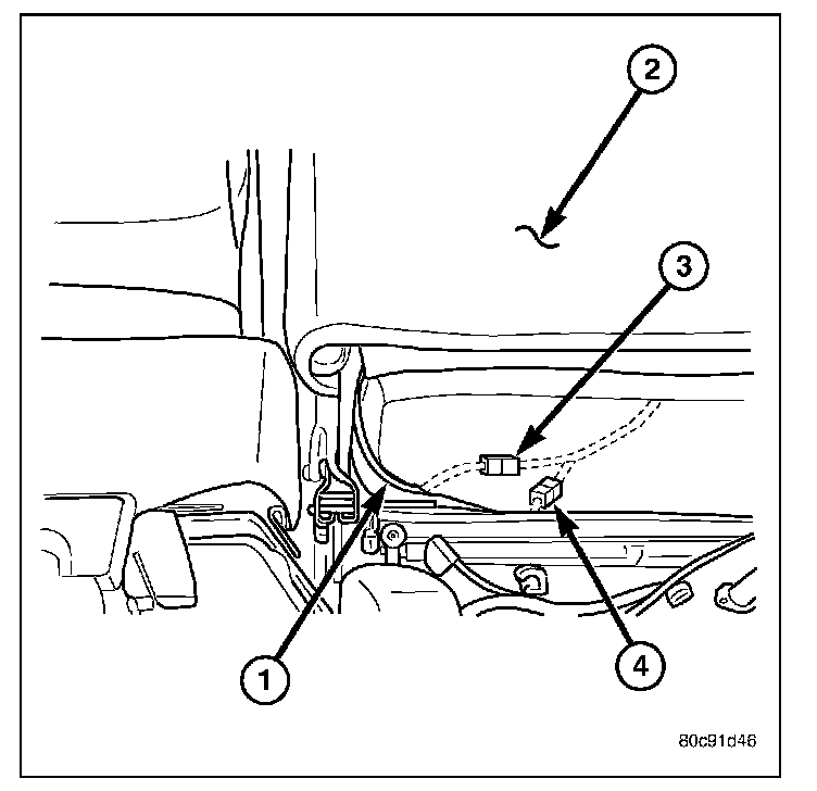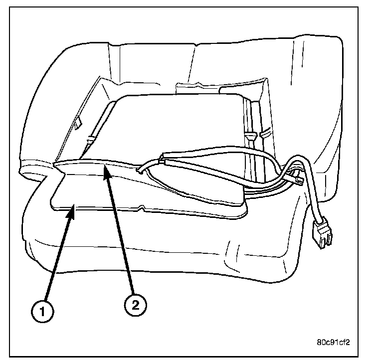 3. Disconnect the inoperative heated seat cushion or seat back element electrical connectors (2).