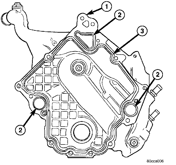 3. Apply Mopar Grey Engine RTV sealer (3) to the front cover using a 3 to 4 mm thick bead.