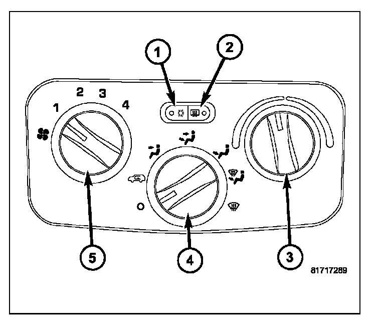 - a push button A/C on/off control (1). The snowflake button contains an LED that illuminates when the A/C system is in operation.