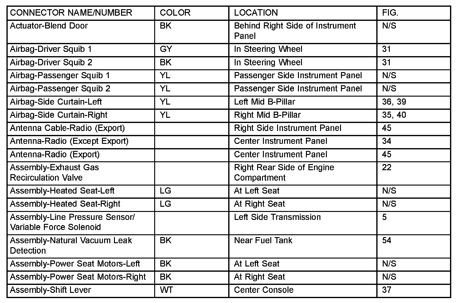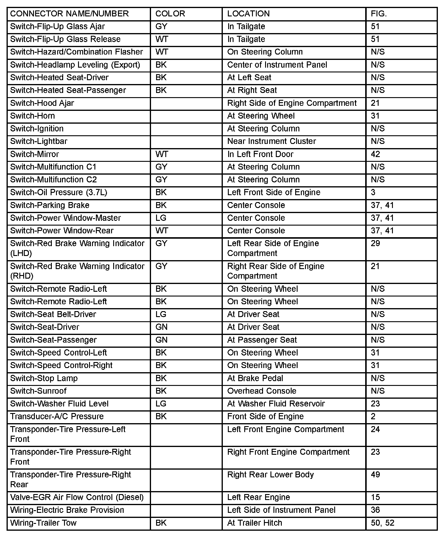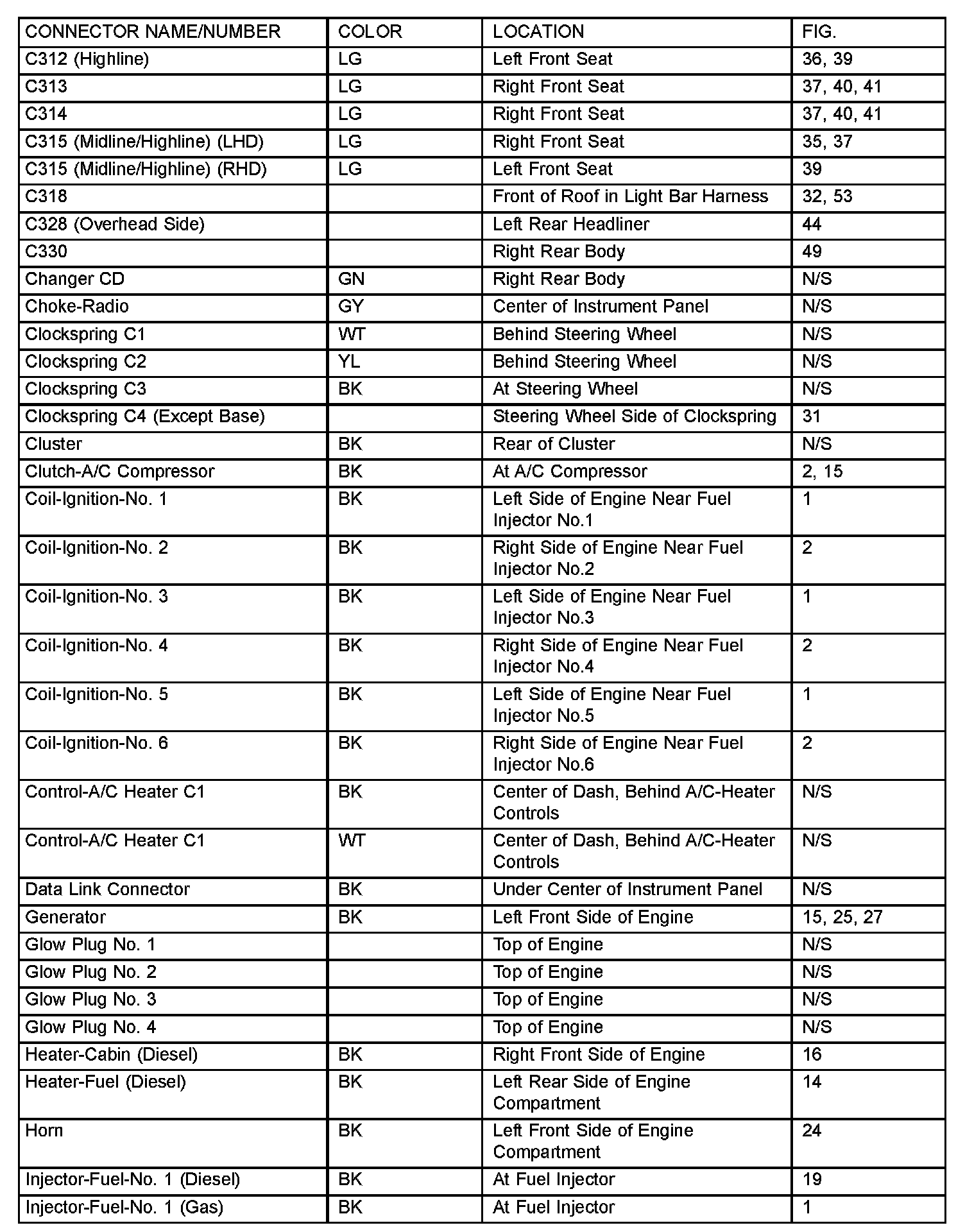 If a link on the index chart to a figure is not provided, that means that the connector and/or figure in question does NOT apply to the vehicle model selected.