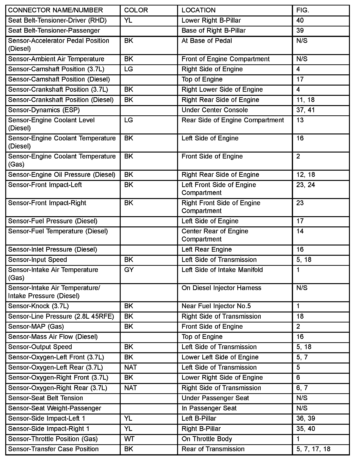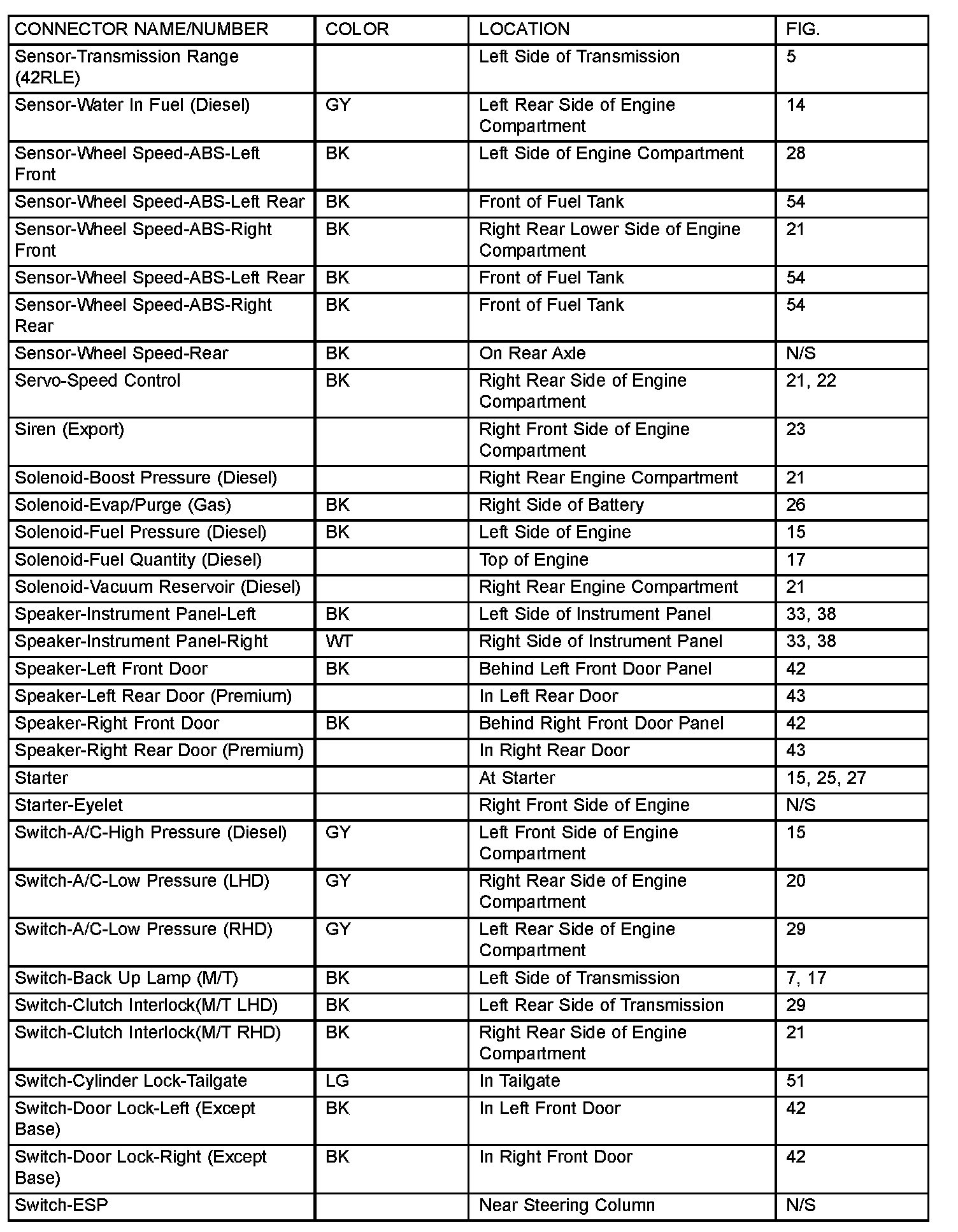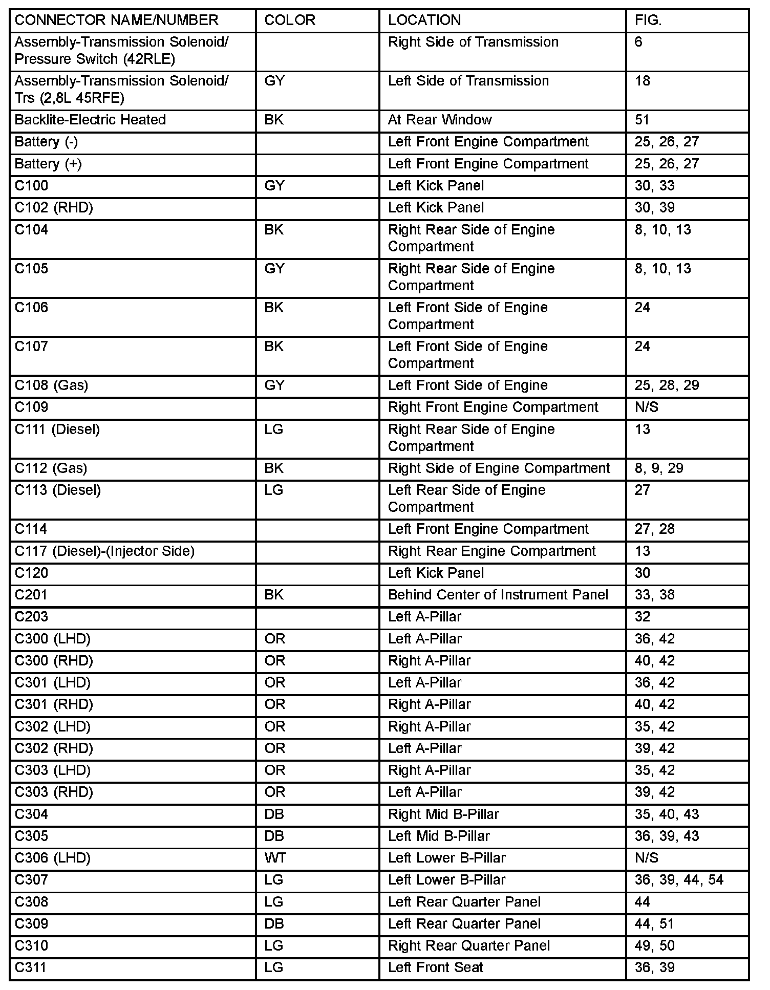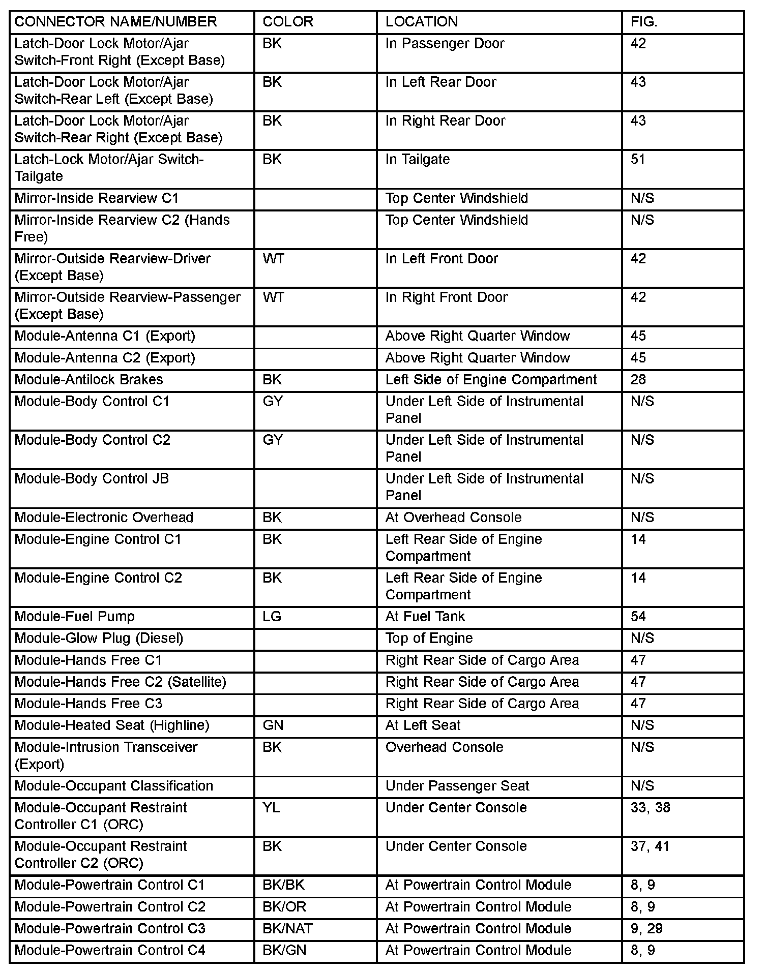 If a link on the index chart to a figure is not provided, that means that the connector and/or figure in question does NOT apply to the vehicle model selected.