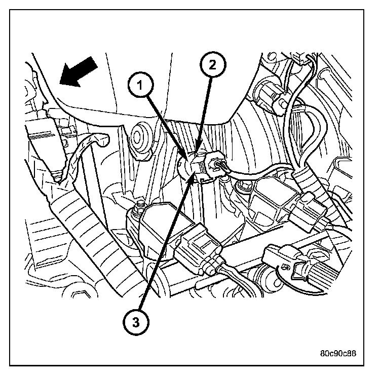 The intake manifold air temperature (IAT) sensor (1) is installed into the left side of intake manifold plenum.