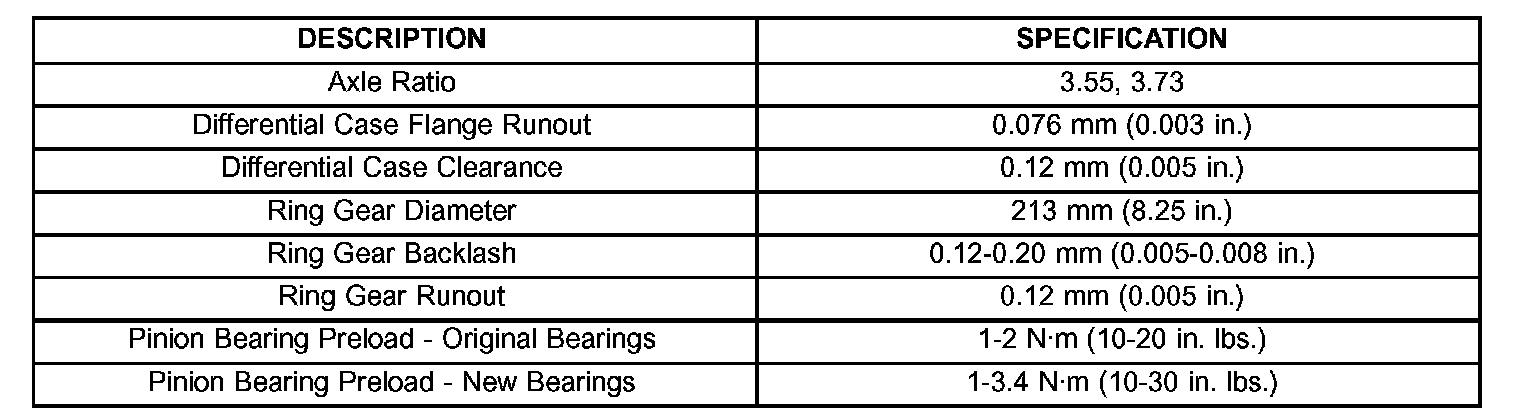 AXLE SPECIFICATIONS: