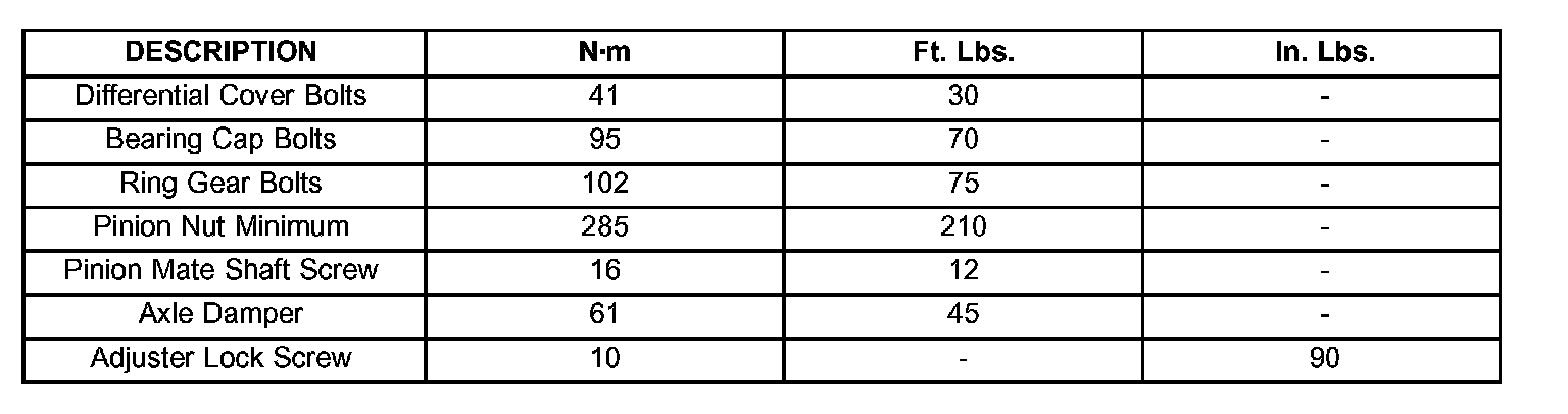 TORQUE SPECIFICATIONS: