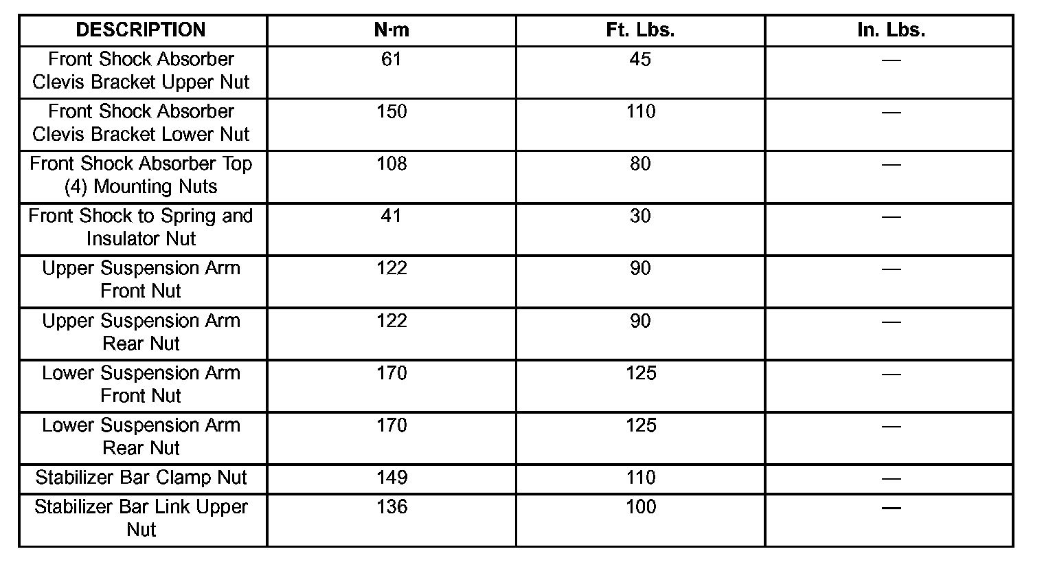 FRONT SUSPENSION TORQUE DESCRIPTION:
