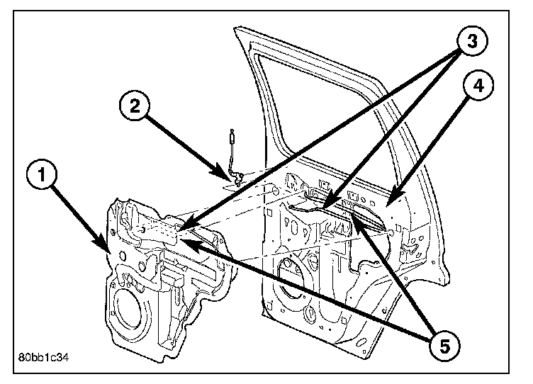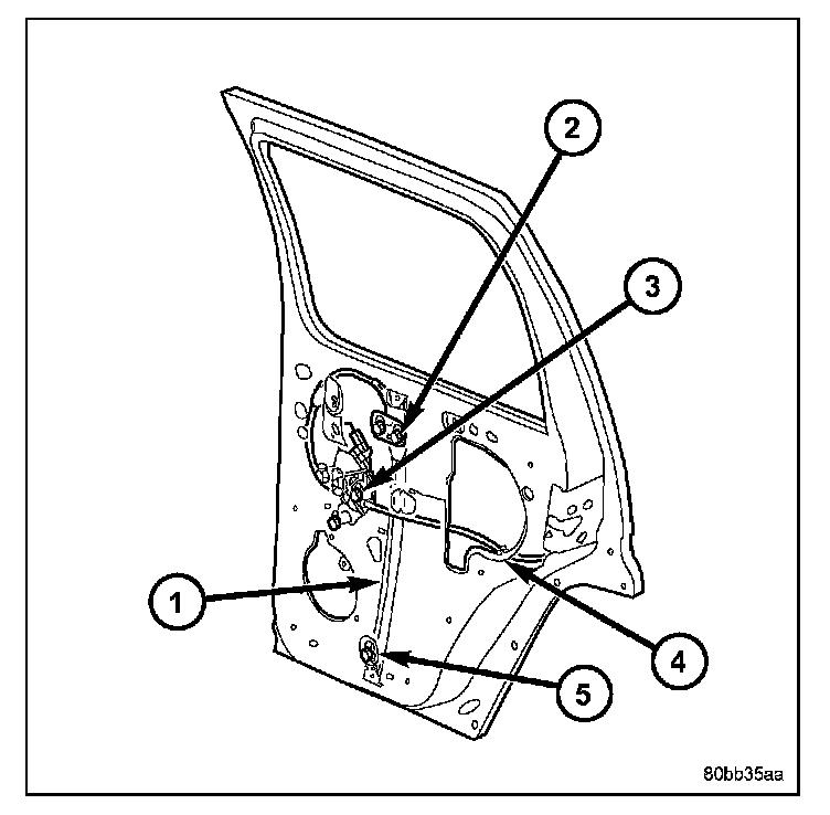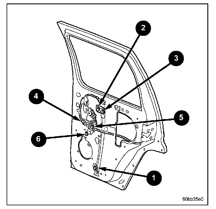2. Loosely install the bolts onto the regulator assembly. (2, 3 and 5)