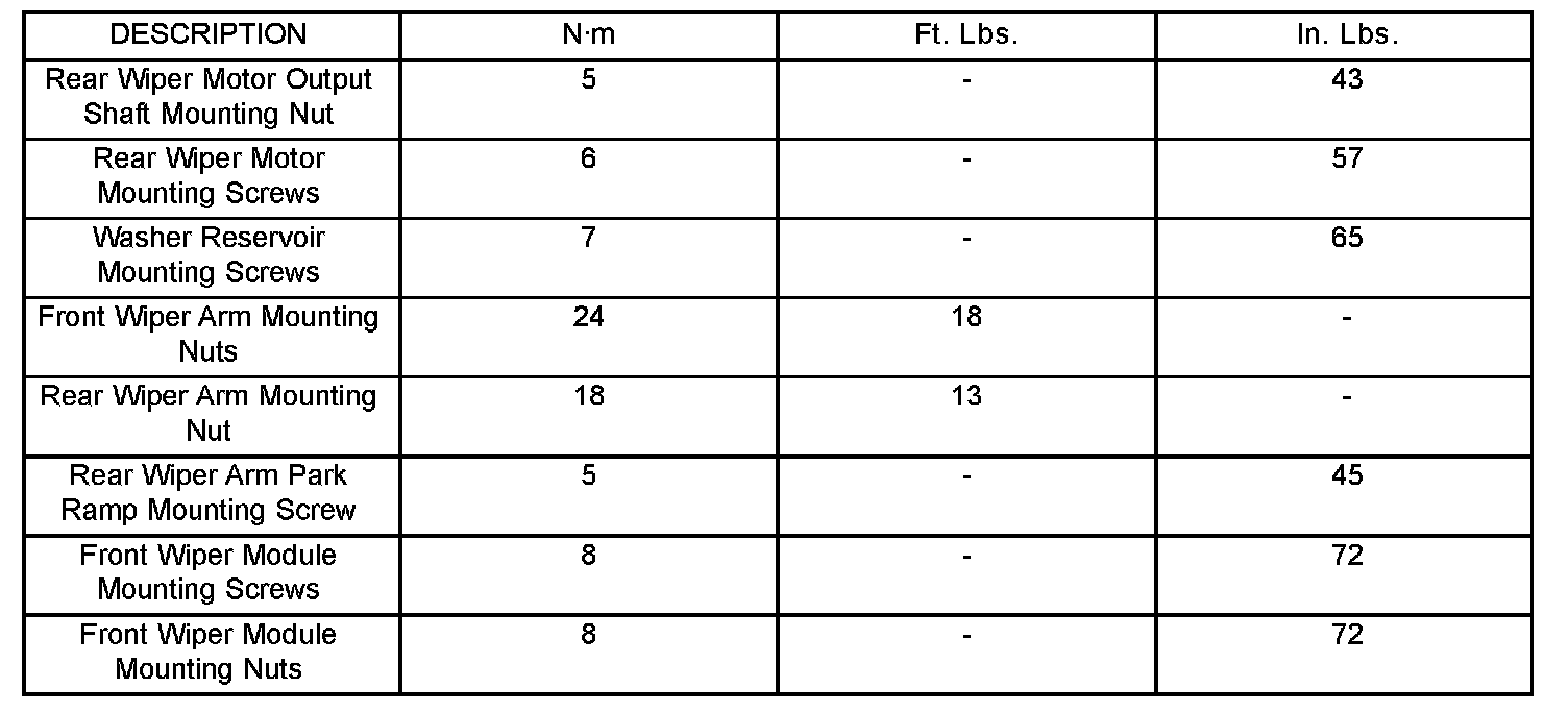 Wiper and Washer Systems: Specifications