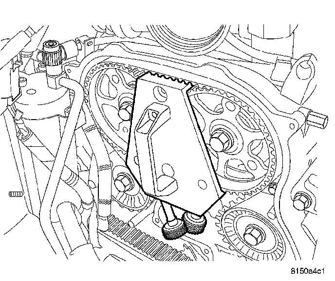 7. Remove camshaft gear locking tool.