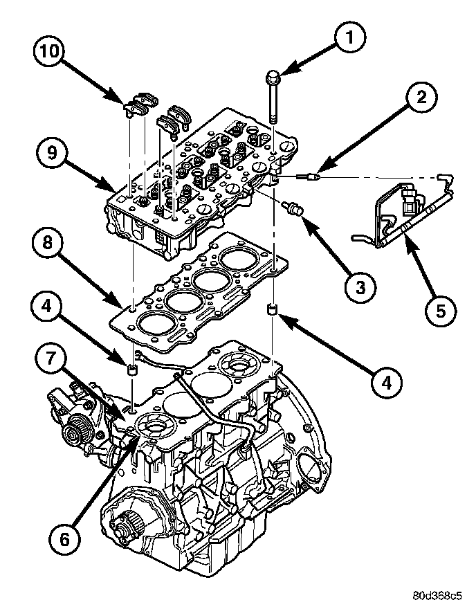 4. Remove coolant temperature sensor (3) from cylinder head.