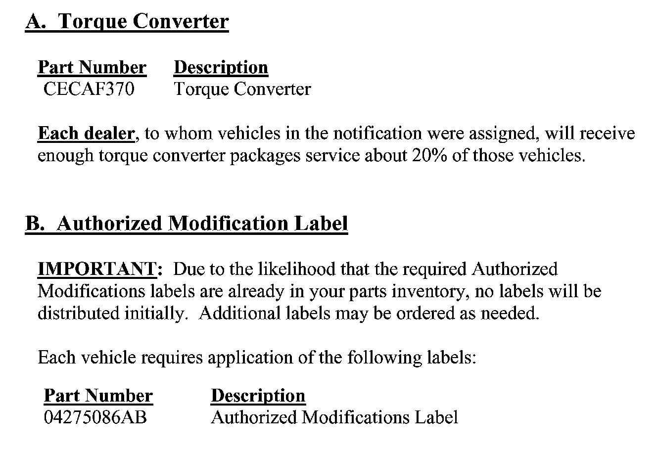 Recall - Torque Converter and Reprogram ECM/TCM: Overview