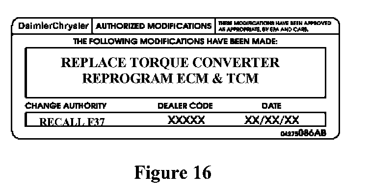 a. Type or print (with a ballpoint pen) the recall number, dealer code and date on the Authorized Modifications Label (Figure 16).